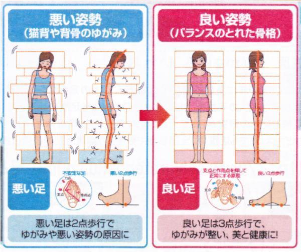 ②足のゆがみが連鎖して姿勢全体を悪化させる